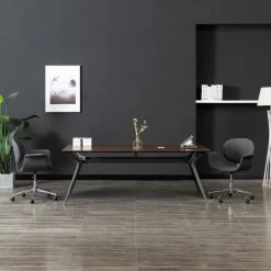 VidaXL Eetkamer Stoel Draaibaar 2 St Gebogen Hout En Stof Grijs