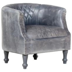 De kuipstoel is bekleed met zacht, echt geitenleer. Hij is dik gevoerd voor comfort. De houten structuur en massief mangohouten poten zijn zeer stevig en duurzaam. Met zijn sierlijk gebogen poten en getufte details voegt de fauteuil een vleugje luxe, klasse en stijl toe aan elk interieur. De kuipstoel is eenvoudig te monteren.