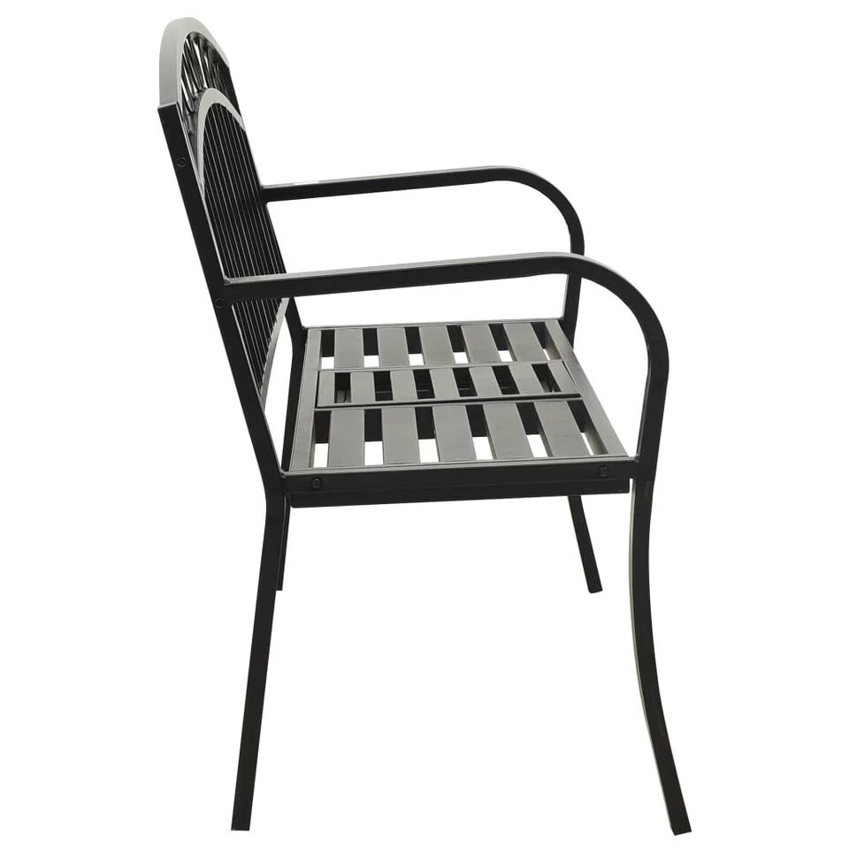 Deze terrasbank is gemaakt van gepoedercoat staal waardoor hij weerbestendig en zeer duurzaam is. Twee gebogen metalen armleuningen vormen de perfecte plek om je armen op te laten steunen. Het tafeltje, dat in het midden van het bankje ontworpen is, is perfect om hapjes en drankjes binnen handbereik te houden.