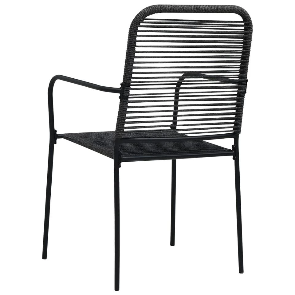 Deze stoelenset is gemaakt van katoenen touw dat geweven is over een gepoedercoat stalen frame. Hij is stabiel en bestand tegen slecht weer en uv-stralen.